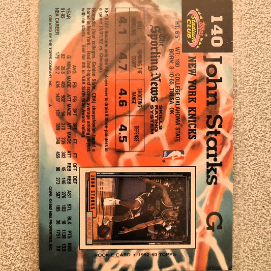 1992 John Starks Topps stadium club #140 NBA Basketball New York Knicks very good sleeved