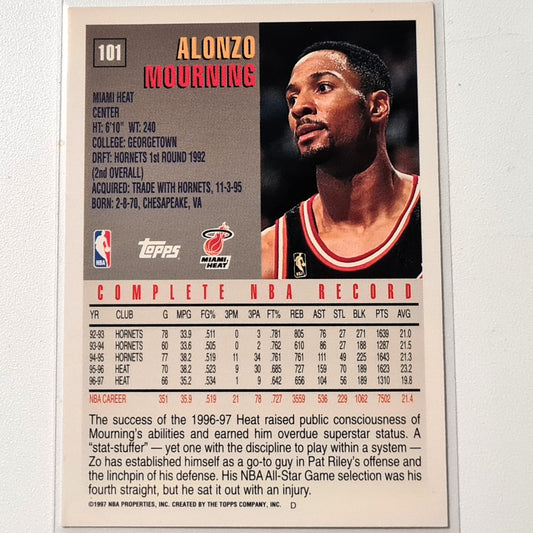 Alonzo Mourning 1997 Topps #101 NBA Basketball Miami Heat Excellent Sleeved