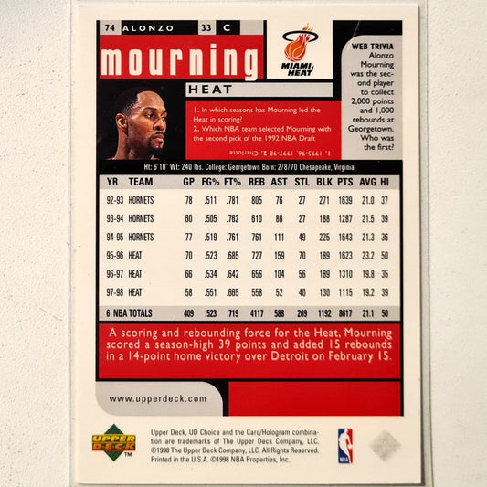 Alonzo Mourning 1998 Upper-Deck #74 NBA Basketball Miami Heat Excellent sleeved