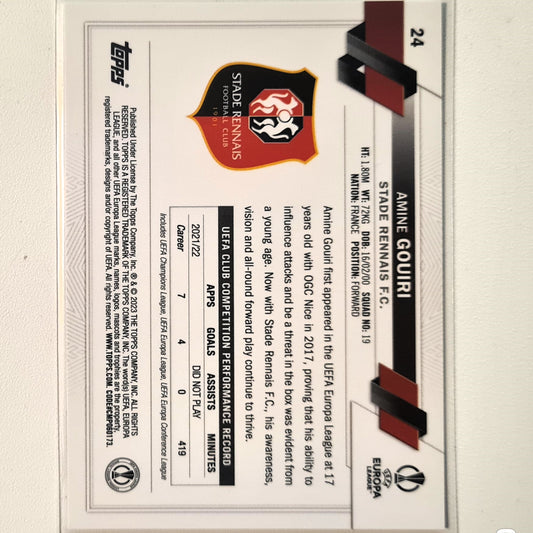 Amine Gouiri 2023 Topps Chrome Europa league Rookie RC #24 Soccer Football Stade Rennais excellent Sleeved