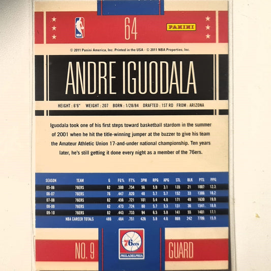 Andre Iguodala 2011 Panini Classics 10-11 #64 NBA Basketball Philadelphia 76ers excellent Sleeved