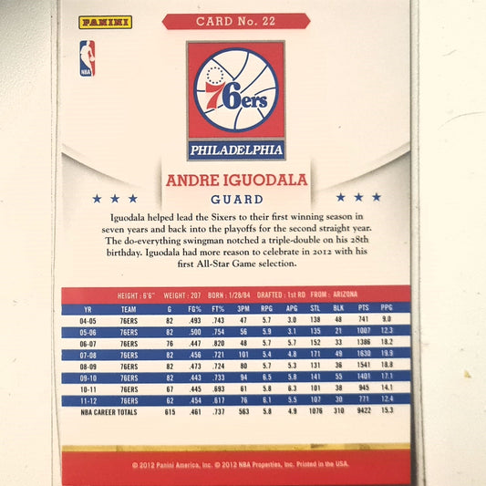Andre Iguodala 2012 Panini NBA Hoops #22 NBA Basketball Philadelphia 76ers excellent Sleeved