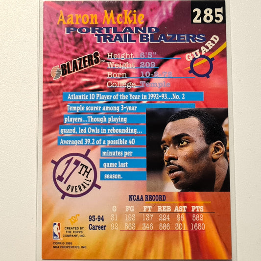 Aaron McKie 1995 Topps Stadium club draft pick 94 Rookie RC #285 NBA Basketball Portland Trail Blazers Very good Sleeved