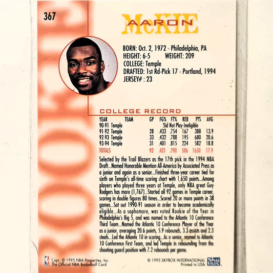 Aaron McKie 1995 Skybox NBA Hoops Rookie RC #367 NBA Basketball Excellent sleeved