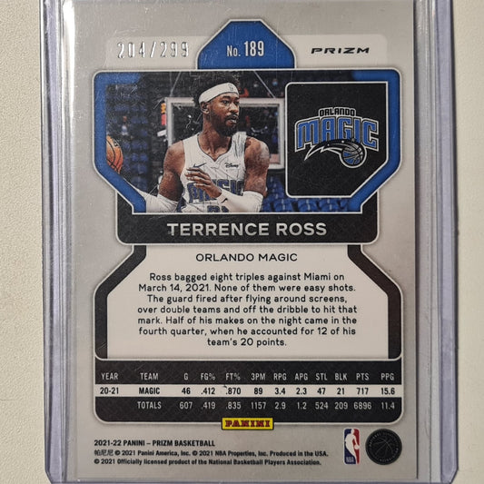 Terrence Ross 2021-22 Panini Prizm red refractor numbered 204/299 #189 NBA Basketball Orlando Magic Excellent