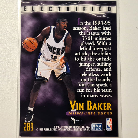 Vin Baker 1996 Skybox Electrified insert #289 NBA Basketball Milwaukee Bucks Excellent Sleeved