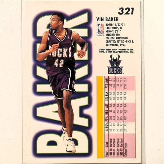 Vin Baker 1994 Fleer 93-94 #321 NBA Basketball Milwaukee Bucks Excellent Sleeved