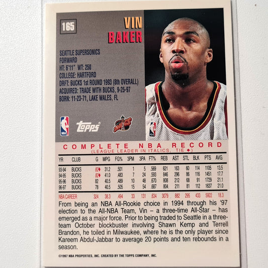 Vin Baker 1997 Topps #165 NBA Basketball Seattle Sonics Excellent Sleeved