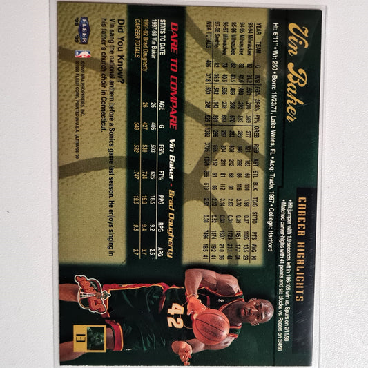 Vin Baker 1998 Fleer Tradition 98-99 #36 NBA Basketball Seattle Sonics Excellent Sleeved