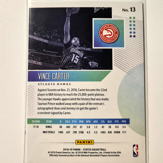 Vince Carter 2018-19 Panini Status #13 NBA Basketball Atlanta Hawks good-very good Sleeved