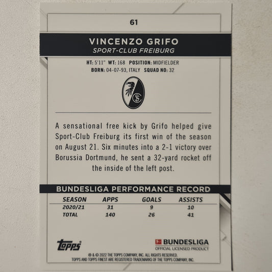 Vincenzo Grifo 2022 Topps Finest Bundesliga #61 Football Freiburg Excellent sleeved