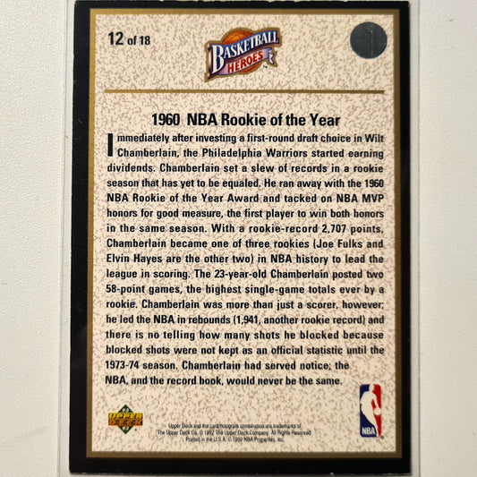Wilt Chamberlain 1992 Upper-Deck Basketball Heroes rookie of the year 12 of 18 NBA Basketball Philadelphia Fair/good sleeved