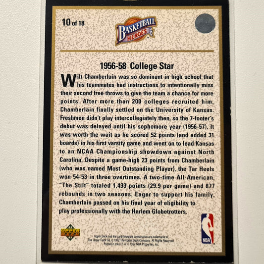 Wilt Chamberlain 1992 Upper-Deck Basketball Heroes College Star 10 of 18 NBA Basketball Philadelphia 76ers Kansas Fair/good sleeved
