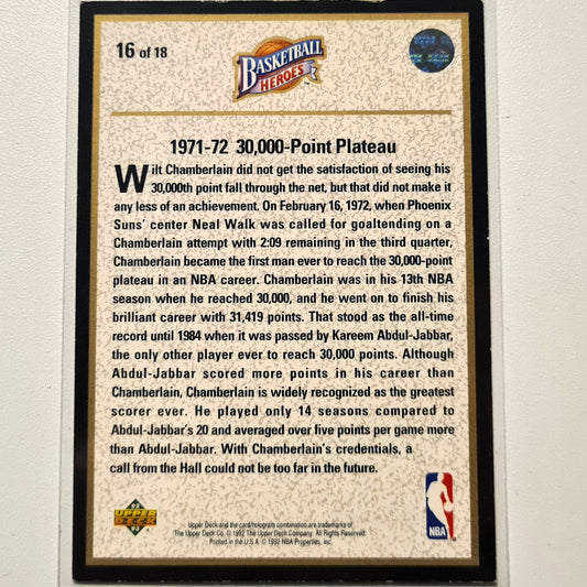 Wilt Chamberlain 1992 Upper-Deck Basketball Heroes 30,000 point plateau 16 of 18 NBA Basketball Philadelphia 76ers Fair/good sleeved