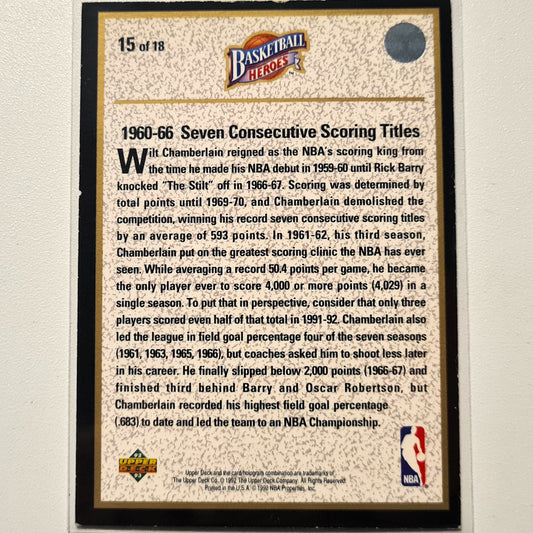 Wilt Chamberlain 1992 Upper-Deck Basketball Heroes Seven Consecutive scoring titles 15 of 18 NBA Basketball Philadelphia 76ers Fair/good sleeved