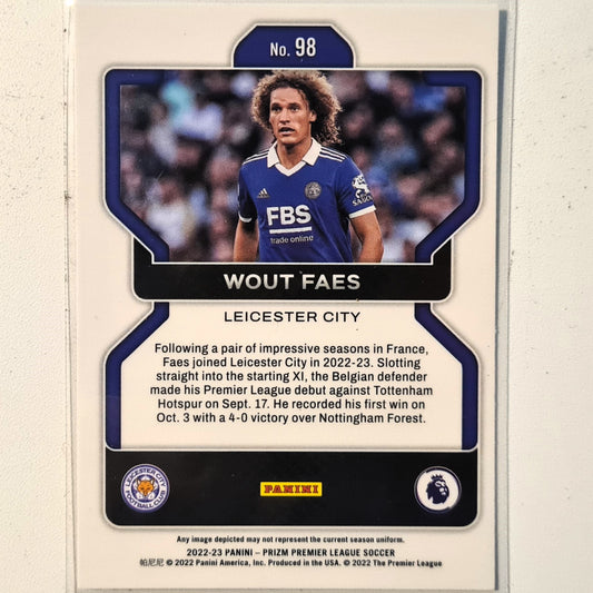 Wout Faes 2022-23 Panini Prizm Premier league Rookie RC #98 Soccer Football Leicester City Excellent/mint Sleeved