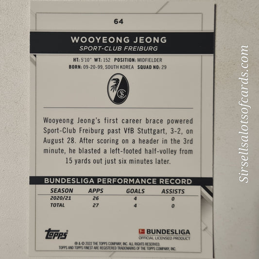 Wooyeong Jeong 2022 Topps Finest Bundesliga #64 Football Freiburg Excellent sleeved