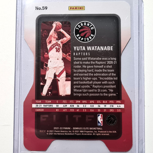 Yuta Watanabe 20021-22 Panini Donruss Elite green die cut 02/18 numbered card #59 NBA Basketball Toronto Raptors Excellent Sleeved