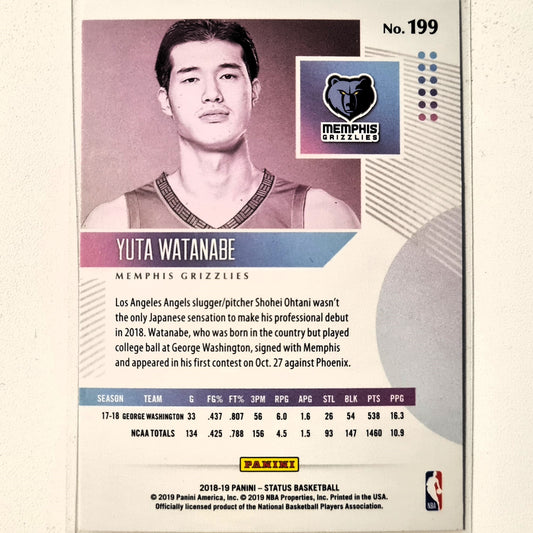 Yuta Watanabe 2018-19 Panini Status Rookie RC #199 NBA Basketball Memphis Grizzlies Excellent sleeved