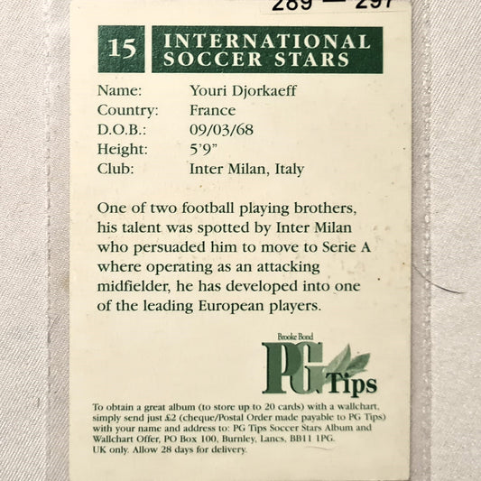 Youri Djorkaeff 1998 World Cup PG Tips UK promotional card found in tea bag boxes #15 France