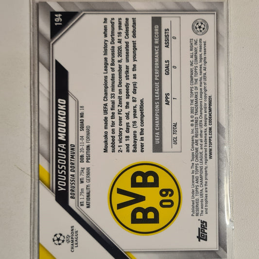 Youssoufa Moukoko 2022 Topps Chrome champions league all star Rookie RC #194 Soccer Football Borussia Dortmund excellent sleeved