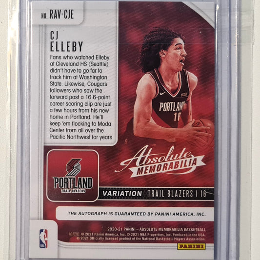 CJ Elleby 2020-21 Panini Absolute Memorabilia Auto Rookie RC RAV-CJE NBA Basketball Portland Trail Blazers Mint Sleeved