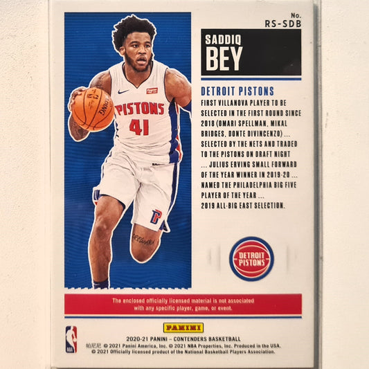 Saddiq Bey 2020-21 Panini NBA Contenders Rookie Ticket patch RC RS-SDB NBA Basketball Detroit Pistons excellent/mint Sleeved