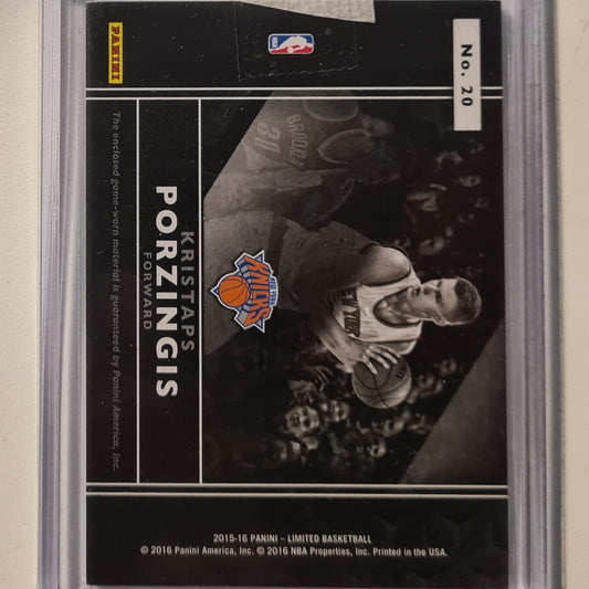 Kristaps Porzingis 2015-16 Panini Limited Knicks rookie RC Game worn patch 57/99 #20 Basketball New York Knicks excellent sleeved