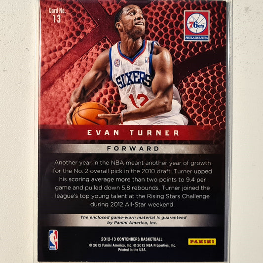 Evan Turner 2012-13 Panini Contenders Materials patch numbered 59/79 #13 NBA Basketball Philadelphia 76ers Chicago Bulls Excellent Sleeved