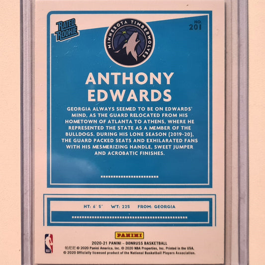 Anthony Edwards 2020-21 Panini Donruss Optic Rated Rookie RC #201 NBA Basketball Minnesota Timberwolves excellent/Mint Sleeved