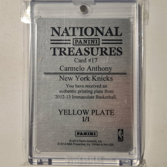 Carmelo Anthony 2014 Panini 2012-13 National treasures #17 yellow printing plate 1/1 NBA Basketball New York Knicks Excellent Sleeved