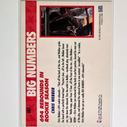 Chris Webber 1994 NBA Hoops BN7 Big Numbers NBA Basketball Golden State Warriors Fair sleeved