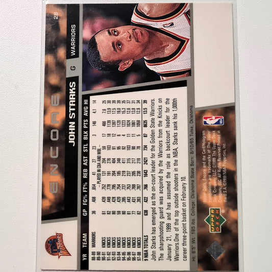 John Starks 1998 Upper-Deck Encore #28 NBA Basketball Golden State Warriors Excellent sleeved