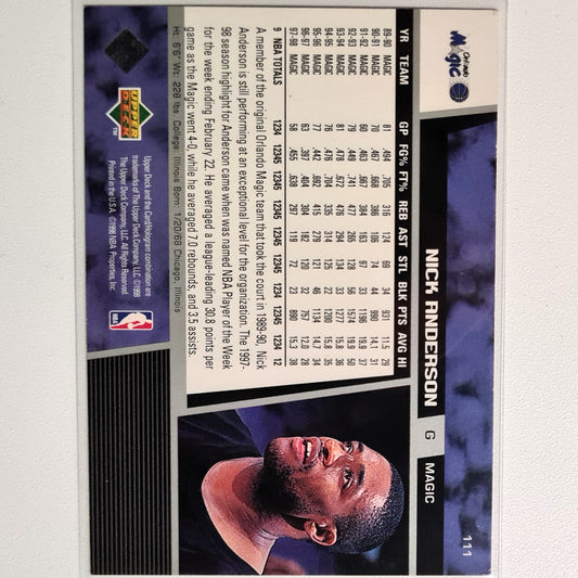 Nick Anderson 1998 Upper-Deck #111 NBA Basketball Orlando Magical good sleeved