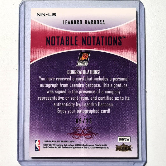 Leandro Barbosa 2007-08 NN-LB Fleer Hot Prospects notable notations autograph 06/25 NBA Basketball Phoenix Suns Very good sleeved cased
