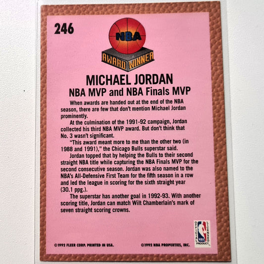 Michael Jordan 1992 Fleer 92-93 NBA MVP Award #246 NBA Basketball Chicago Bulls Very Good sleeved