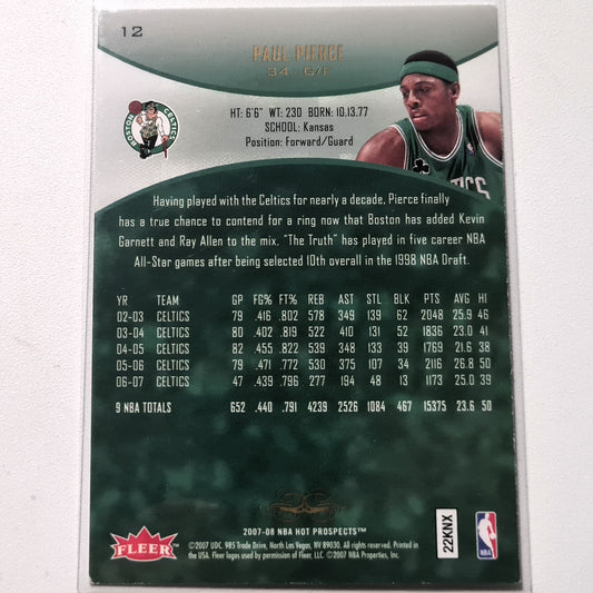 Paul Pierce 2007-08 Fleer Hot Prospects #12 NBA Basketball Boston Celtics Very good sleeved