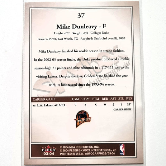 Mike Dunleavy 2004 Fleer 03-04 Autographics #37 NBA Basketball Golden State Warriors Superb sleeved