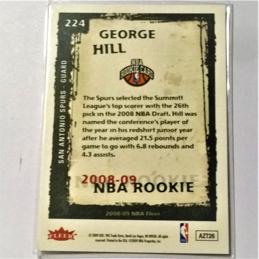 George Hill Fleer 2008-09 NBA Basketball Rookie Card San Antonio Spurs nice sleeved