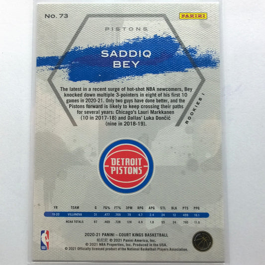 Saddiq Bey 2020-21 Panini Court Kings NBA Basketball #73 Rookie Card Detroit Pistons trading card mint sleeved