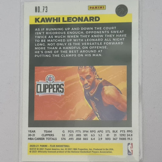 Kawhi Leonard 2020-21 Panini Flux #73 NBA Basketball Los Angeles Clippers Excellent/mint sleeved