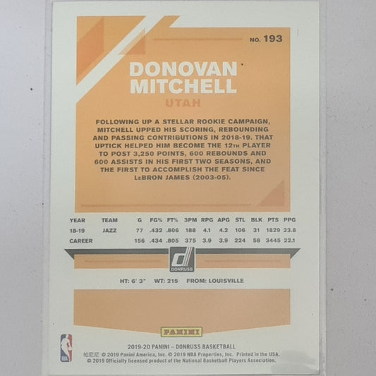 Donovan Mitchell 2019-20 Panini NBA hoops #193 NBA Basketball Utah Jazz Excellent/mint sleeved