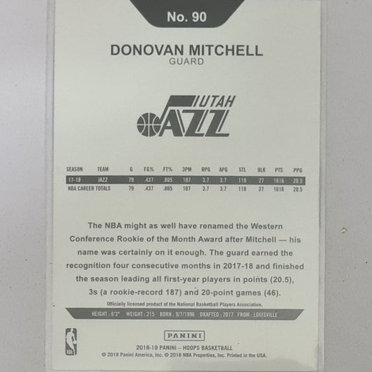 Donovan Mitchell 2018-19 Panini NBA hoops #90 NBA Basketball Utah Jazz Excellent/mint sleeved