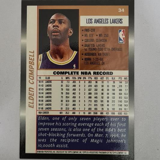 Elden Campbell 1998 Topps #34 NBA Basketball LA Lakers Excellent