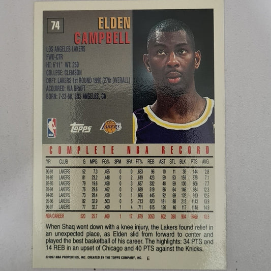 Elden Campbell 1997 Topps #74 NBA Basketball LA Lakers Excellent