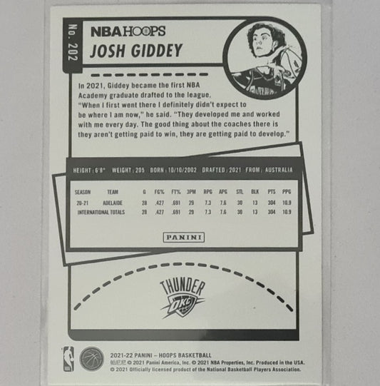 Josh Giddey 2021-22 Panini NBA Hoops Rookie RC #202 NBA Basketball Oklahoma City Thunder Excellent-mint