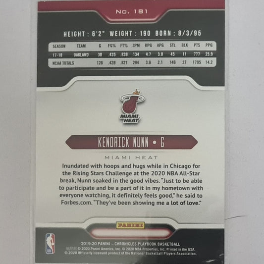 Kendrick Nunn 2019-20 Panini Chronicles Playbook rookie RC #181 NBA Basketball Miami Heat excellent/mint Sleeved