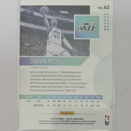 Donovan Mitchell 2018-19 Panini Status #62 NBA Basketball Utah Jazz Excellent/mint sleeved