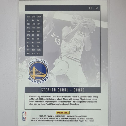 Stephen Curry 2019-20 Panini Chronicles Luminance #151 NBA Basketball Golden State Warriors Excellent/mint sleeved