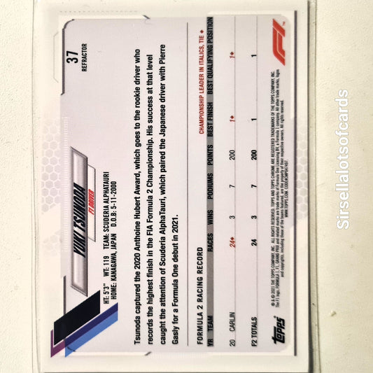Yuki Tsunoda 2021 Topps Chrome Refractor variant Rookie RC #37 F1 Motorsports Alfaturi excellent Sleeved